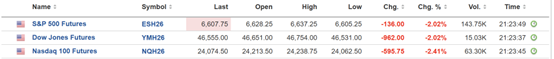 与此同时,受油价上涨影响,美国股指期货周一同样大幅下跌,这预示着美股周一开盘后可能暴跌。截至发稿,标普500指数期货、道琼斯工业平均指数期货以及纳斯达克100指数期货均跌超2%。